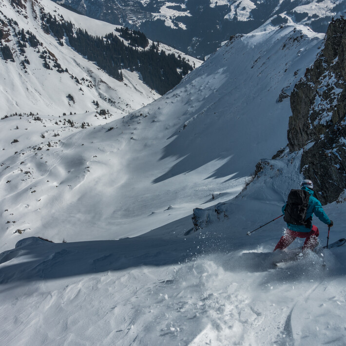 Es geht höher hinauf und wir entfernen uns mehr und mehr von den Liftanlagen. Splitboards, Tourenschier oder andere Aufstiegshilfen sind ab dem Level 2 ein „must have“.