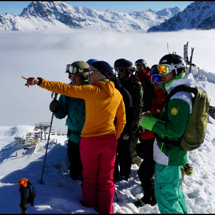 Inhaltlich knüpft das Next Level an die jeweilige Freeridestrategie der Trainingssession an. Es kommen die Themen Kartenkunde, Orientierung und Lawinenkunde dazu und es wird mit der Planung und Umsetzung von ersten Touren begonnen.