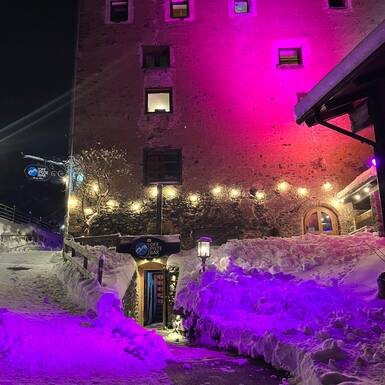 Die Almbar liegt mitten im Zentrum von Hinterglemm, direkt beim Hotel Glemmtalerhof.