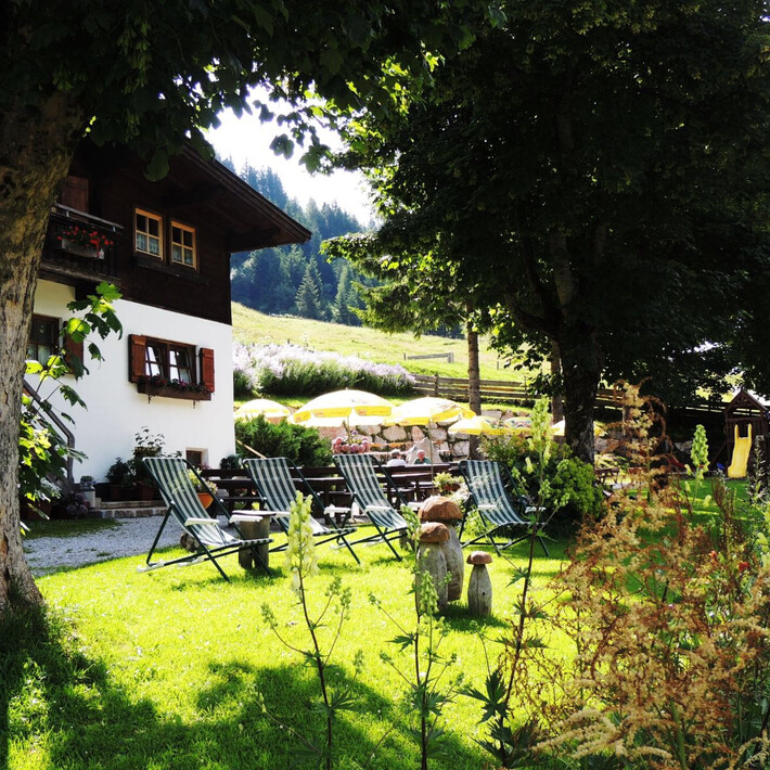 Genießen Sie den Gastgarten oder nehmen Sie in der gemütlichen Stube Platz. Gerne wird Ihnen auch ein herzhaftes Almfrühstück (auf Vorbestellung) angeboten. Ganztags warme Küche. Für die kleinen Bergsteiger ist auf dem Spielplatz für genügend Spaß und Abwechslung gesorgt.