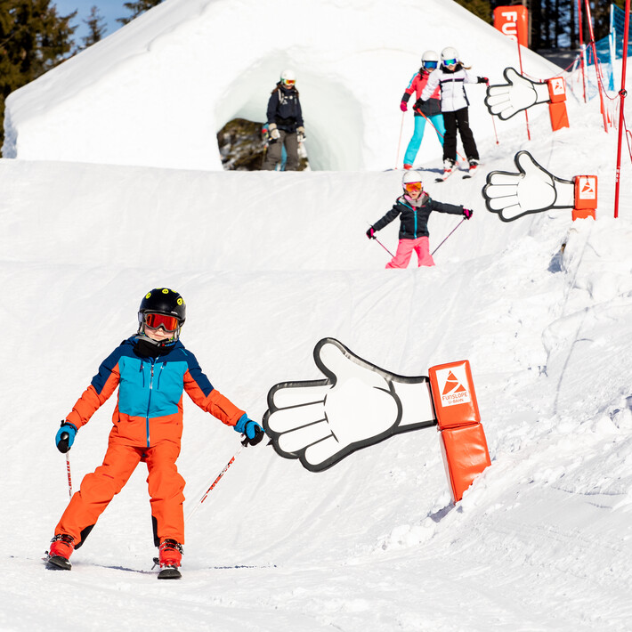 Am oberen Teil der Funslope U-Bahn erwartet euch eine klassische Funslope, mit „Speedboost“, Schneewellen, einer rasanten Steilkurve, einem Tunnel und zahlreichen „Low-Fives“, mit denen ihr beim Vorbeifahren einklatschen könnt. Dann geht’s weiter über die Piste zum zweiten Teil der Funslope, der direkt neben dem Family Park liegt.