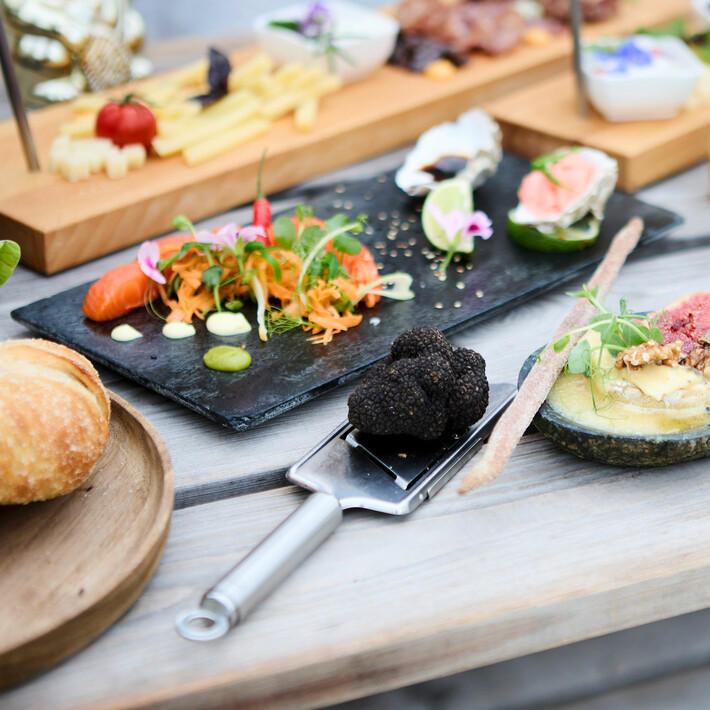 Entspannt zurücklehnen und das Dolce Vita-Gefühl in den Bergen erleben. Im Genuss Hoch 12 werden Culinaria Regionale serviert: Köstlichkeiten aus der italienischen, internationalen und österreichischen Küche mit Zutaten von ausgesuchten, regionalen Partnern. Als flüssige Gaumenfreuden gibt es exzellente Weine und liebevoll zusammengestellte Drinks. Das Bergpanorama und entspannte Musik runden den Genuss mit allen Sinnen ab.