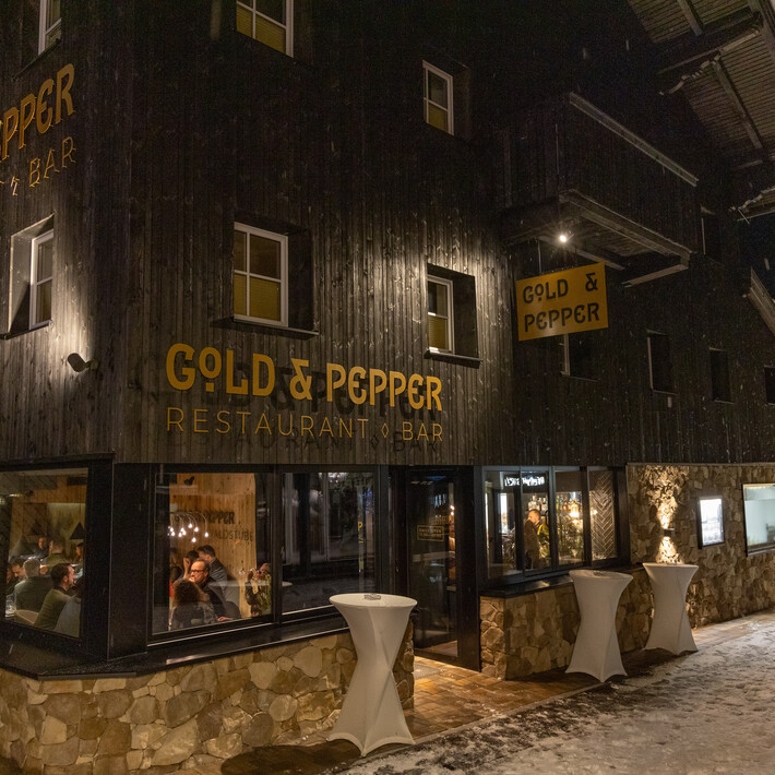 Das Gold & Pepper Restaurant inmitten von Saalbach zählt als Geheimtipp für Genießer. Hier wird von mittags bis in den späten Abend alpine Küche mit mediterraner Note zubereitet. In diesem Sinne finden Sie auf der Karte neben Klassikern wie Beef Tatar oder Wiener Schnitzel, genauso Erlesenes wie Saint Jacque Jakobsmuscheln oder Petersilien Risotto.