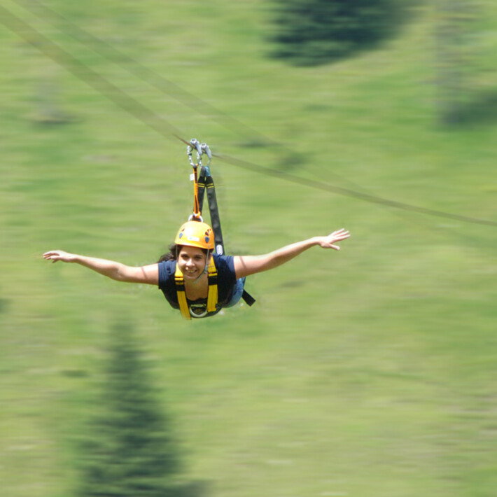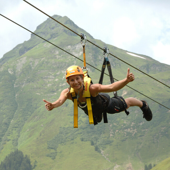 Mit dem 2,5 km langen Mega Flying Fox wird das Glemmtal vier Mal überquert.