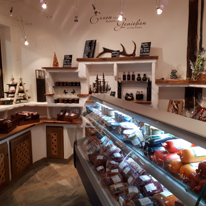 Geräucherte Spezialitäten wie Bauch-, Karree- und Schinkenspeck, geräuchertes Rind- oder Hirschfleisch, Haus- oder Kräuterwürstel uvm.