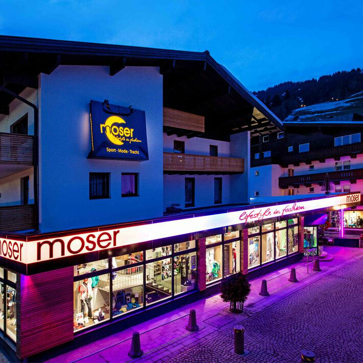 Moser lifestyle in fashion, direkt im Zentrum von Hinterglemm, bietet eine große Auswahl an Fashion- und Sportoutfits aller weltweit angesagten Labels. Die Trachtenstube Moser liegt neben dem Hauptgeschäft, beim Hotel „Zur Dorfschmiede“. Die Boutique Moser befindet sich im 5* Hotel Alpine Palace, etwa 150 Meter vom Moser lifestyle in fashion Store entfernt. Accessoires, wie Tücher, Lingerie, Schmuck, Taschen uvm., runden das Gesamtangebot ab. Ein Ansprechpartner für trendige Mode-, Sport- und Trachtenbekleidung im Zentrum von Hinterglemm!