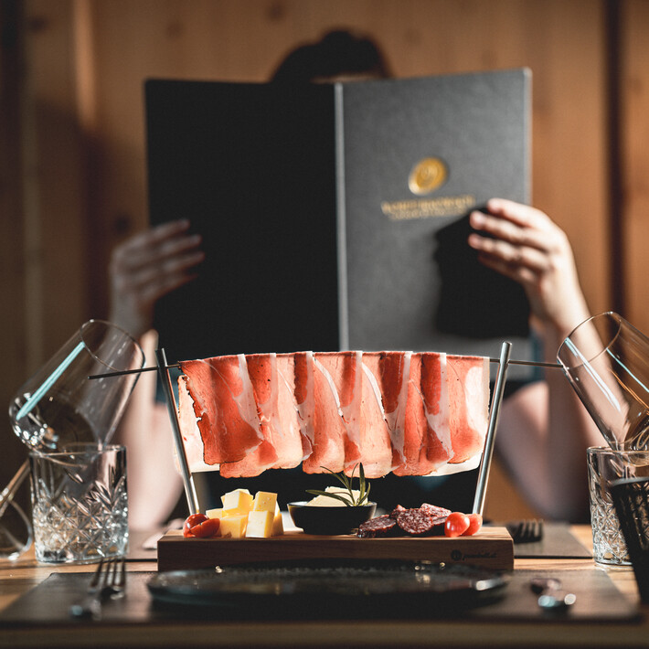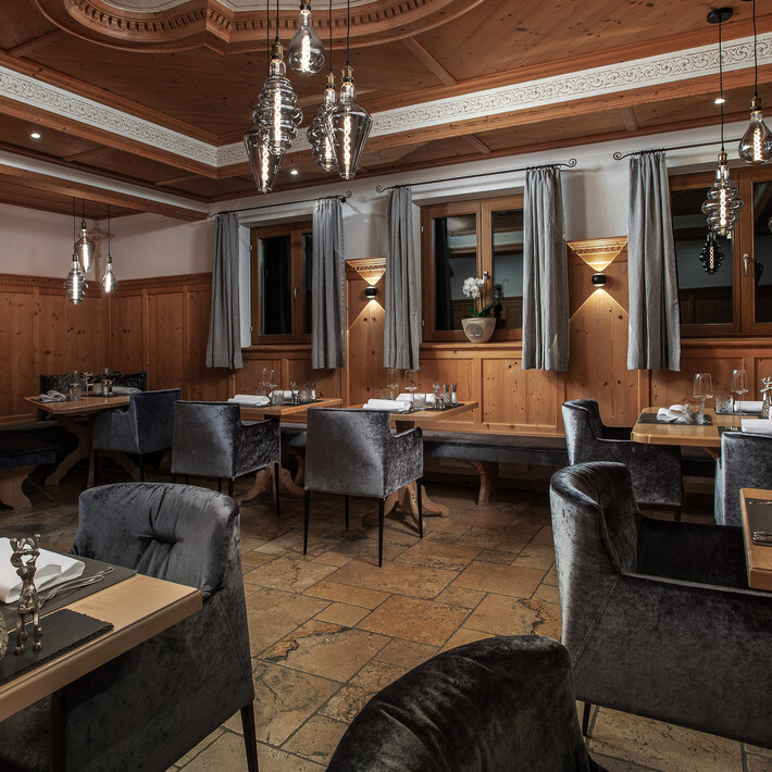 Das Ambiente der Stube zeugt von der Liebe zur Tradition der Gastgeberfamilie Riedlsperger. Die modernen Akzente und das hochwertige kulinarische Angebot samt Produkten aus der eigenen Landwirtschaft machen den Besuch im beliebten À-la-carte-Restaurant in Saalbach wunderbar genüsslich.