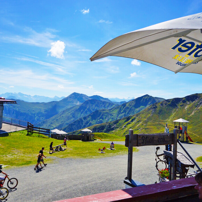 Das SkyRest liegt genau an der Bergstation des Schattberg X-press und ist somit für alle Personen leicht zugänglich. Auf der großen Sonnenterrasse mit dem schönen Panoramarundblick können Sie Ihre Seele baumeln lassen und bei heimischer Kost Ihren Gaumen erfreuen. Für die kleinen Gäste steht ein Spielplatz direkt neben der Hütte. Biker: Die X-Line startet direkt an der Bergstation beim SkyRest.