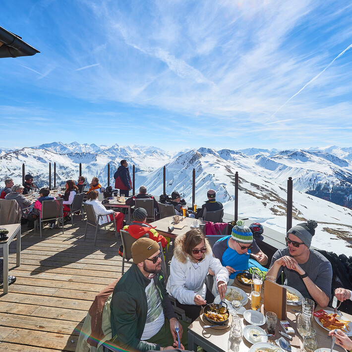 Winter: Direkt an der Bergstation der Westgipfelbahn auch für Sonnenanbeter ohne Ski erreichbar.