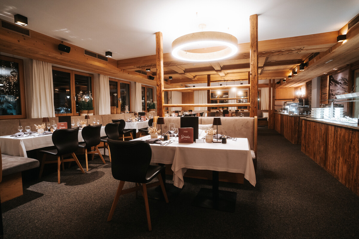 - 5-6 Gänge-Menü: Salatbuffet, Suppe, zwei Hauptspeisen zur Wahl + vegetarisches Menü, Kindermenüs in Ferienzeiten, Dessert, Käse & Obst vom Buffet
