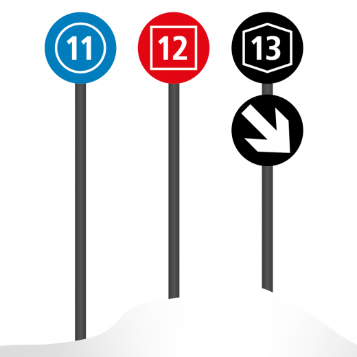 Warum ein neues Pistenleitsystem fällig war erzählt mir Sebastian Schwaiger, Marketingleiter des Skicircus Saalbach Hinterglemm Leogang Fieberbrunn. „Erstmalige Besucher im Skicircus standen ohne die Ortskenntnis der Einheimischen oder Stammgäste manchmal ziemlich orientierungslos am Hang. Mit den Erweiterungen und Zusammenschlüssen der letzten Jahre ist nun ein ,Aufräumen im Schilderwald‘ nötig geworden. Im Zuge dieser Neugestaltung verlieren auch einzelne Pisten ihren umgangssprachlich gebräuchlichen Namen. So waren bisher ,die Gratabfahrt`, ,die Steinbergpiste` oder ,die Obingleitn` jeweils ein Begriff für Skicircus-Kenner. Doch eine gute Orientierung ist für das Sicherheitsgefühl der Gäste wichtig. Gemeinsam mit dem Gestaltungsbüro motasdesign von Christian Lunger und Markus Scheiber wurde ein System unter der Vorgabe ,größtmöglicher Einfachheit‘ ausgearbeitet.“
