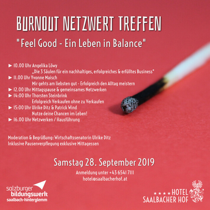 Together with the Burnout Network the Saalbacher Hof has organised an exciting day around the topic of BURNOUT.
