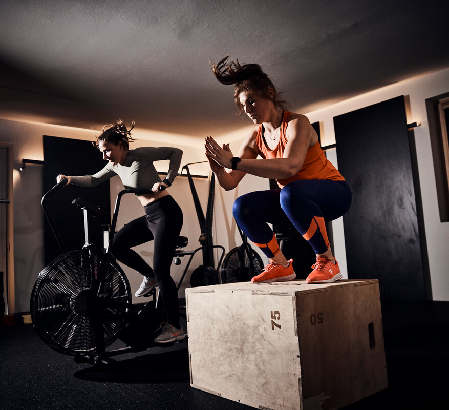 You can expect challenging interval blocks on the rowing machine and assault bike, combined with functional bodyweight exercises and small equipment. An effective full-body workout for maximum endurance, strength endurance, and power.