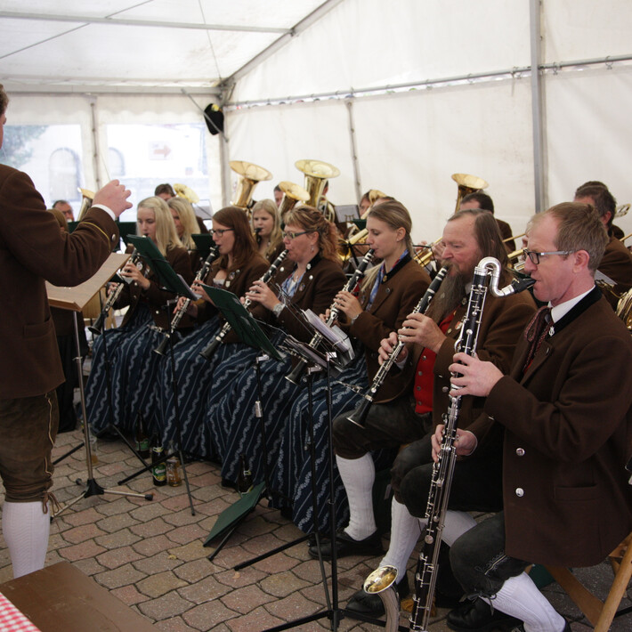 Festival tent with musical entertainment with the Trachtenmusikkapelle Saalbach Hinterglemm und der Glemmerpower