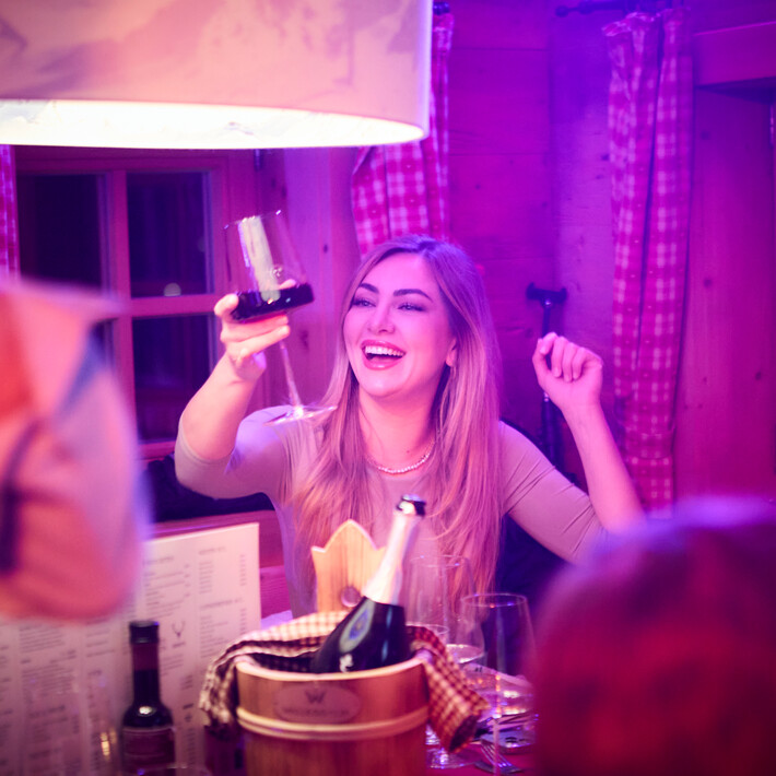 We provide an unforgettable evening in a cozy mountain hut for romantics, partygoers, and food lovers. Pick-up is at 5:45 PM from Saalbach at the Schattberg X-Press stop and at 6:00 PM from the 12er-Kogel on the main street, across from the Hexenhäusl. A fire bowl lights up the snow as you enjoy a welcome drink. A gourmet 3-course meal offers culinary delights while our entertainer Tony Williams guides you through the evening with live music. With a breathtaking view of the illuminated Glemmtal, the Mountain Bus departs back to the valley at 10:00 PM.