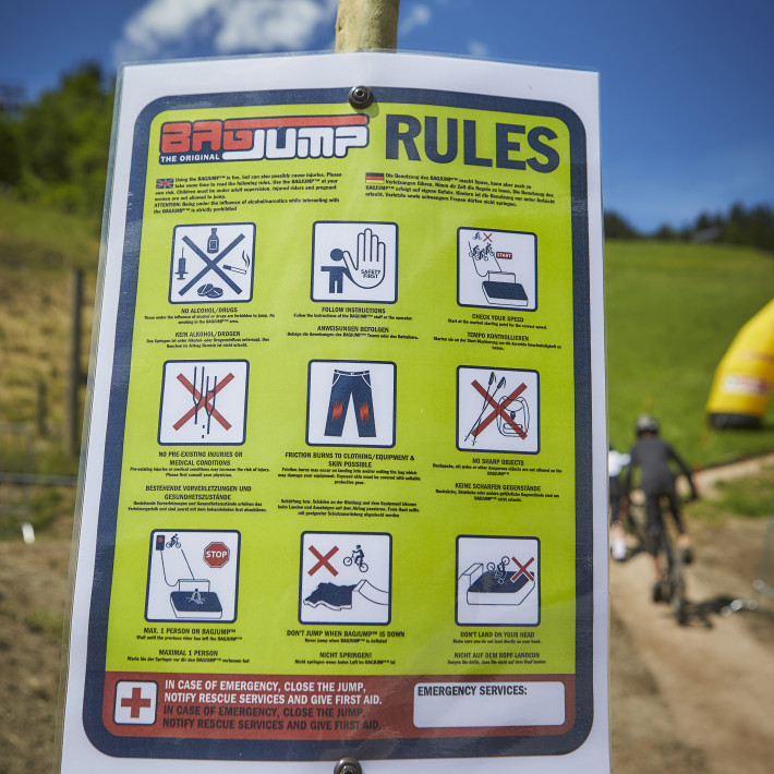 The Bagjump area can be used free of charge daily from 09:00 to 17:00. In bad weather, the Bagjump remains closed for safety reasons.