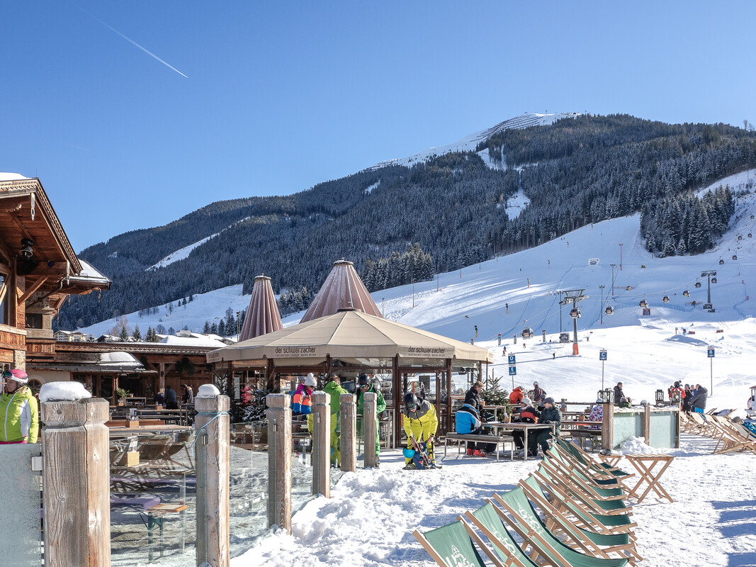Restaurant, Après-Ski, Summer Lounge, Event location situated directly next to the Unterschwarzach lift in Hinterglemm