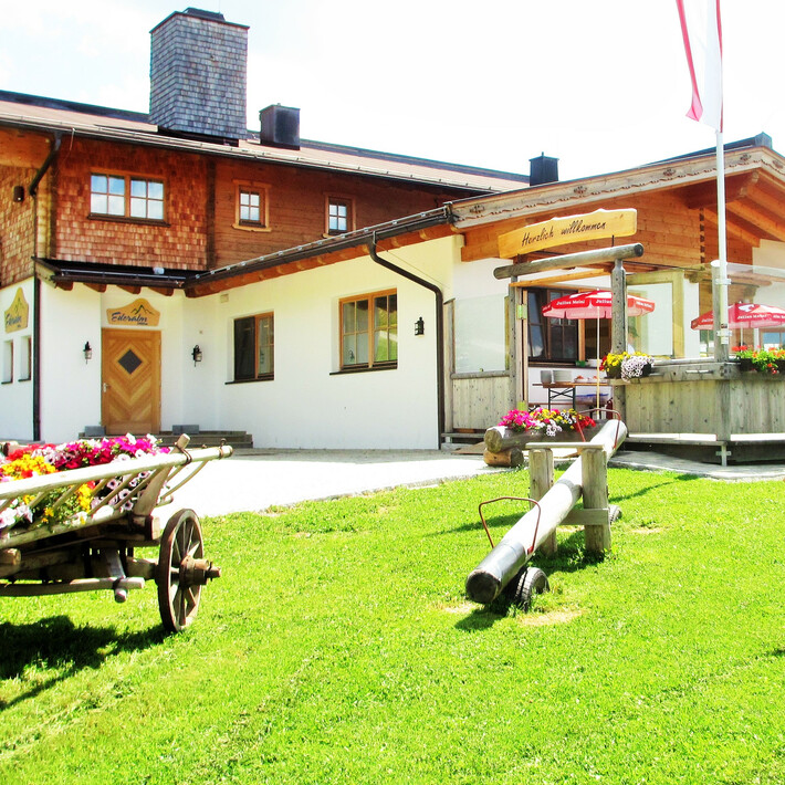 Ederalm lies right on the Montelino adventure trail in Saalbach on the Kohlmais mountain in summer. It has a children’s playground, a large sun terrace with a glorious view, cosy rooms and traditional regional cuisine. Cyclists are welcome.