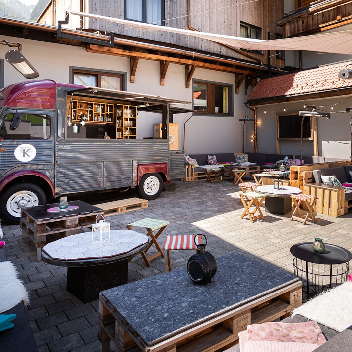 You will find "K by Tobi" directly opposite the Kohlmaisbahn, a perfect location for a culinary stopover or a cool drink after a long day of biking or hiking. Try the homemade lemonades, iced tea or chilled summer drinks such as Craft Beer and Moscow Mule. A perfect way to round off the day with friends.