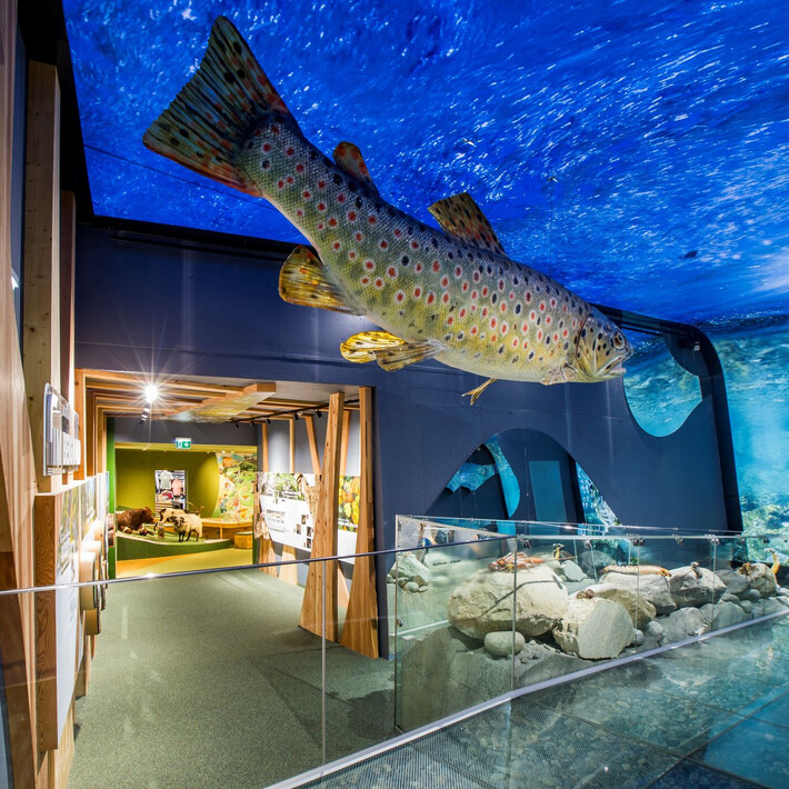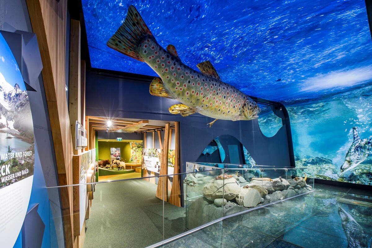 The Glacier Friendship Book showcases leading glacier experts and their research. The Water Realm highlights the region's wealth of water, including 500 mountain lakes, 800 moors and countless streams. An impressive, oversized spatial installation takes visitors on a journey following a drop of water through the Hohe Tauern National Park.