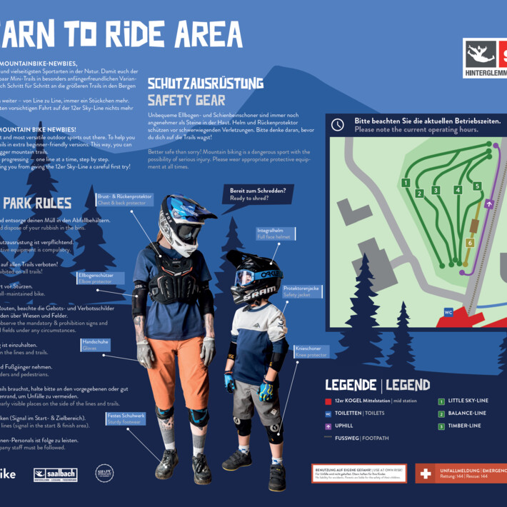 The ideal place to improve your riding skills and safety on a mountain bike. On the four different routes with various elements, curves and surfaces, you can gradually feel your way and prepare step-by-step for the first "big trail", the 12er Sky-Line, which starts at the 12er KOGEL mountain station.