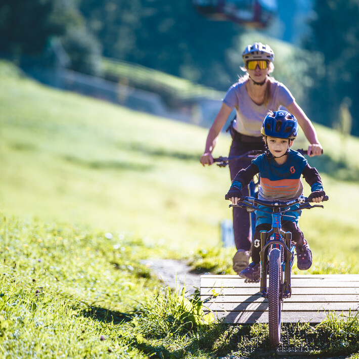 Another highlight for beginners of all ages: the 12er Learn to Ride Area at the middle station of the 12er KOGEL cable car in Hinterglemm. A mountain bike playground awaits you here to train your skills and prepare you for bigger challenges.
