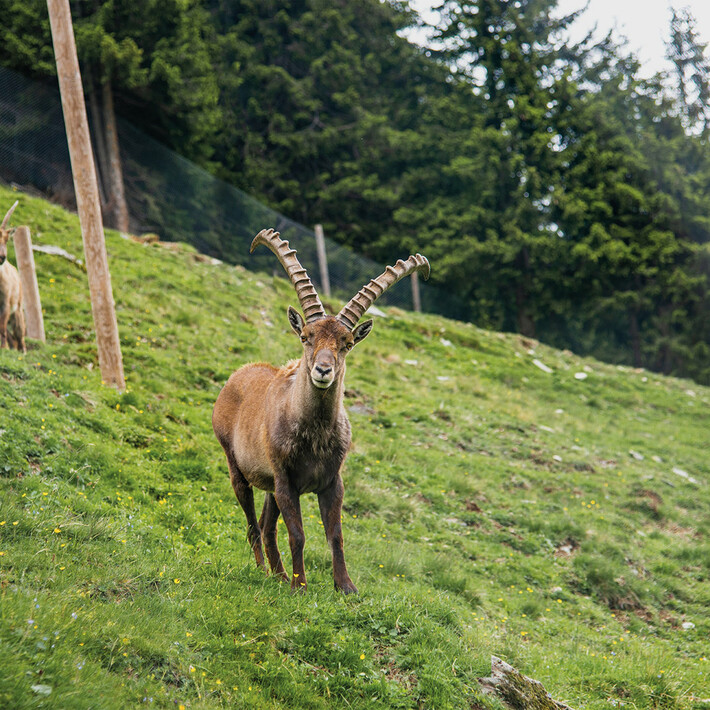 Chamois, foxes, golden eagles, deer and co. are masters in the game of hide-and-seek and only lucky people can tell about an encounter. But on this exploratory tour on the nature trail you are guaranteed to meet a devout golden eagle, a playful chamois, a curious marmot, a sly fox and a magnificent stag. The life-size wooden figures can even be stroked. The absolute highlight of the nature trail: the majestic alpine ibex - the "Kings of the Alps" - awaits a visit at the end. And if you are very lucky, you will discover the animals in their natural habitat through the large binoculars at the Ossmannalm.