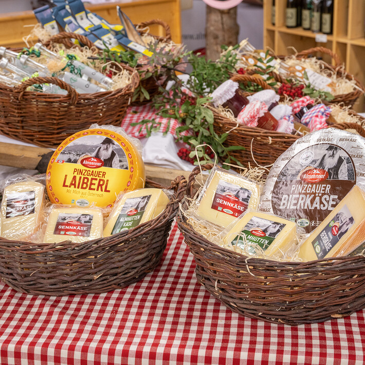 In the delicatesse market at the Pinzgau Milch dairy in Maishofen, value is placed on sustainably produced products from the region. Convince yourself of the quality of cheese specialities and dairy products from our own production as well as many other regional delicacies.