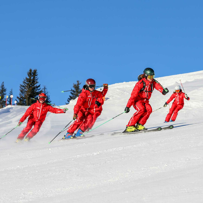 The award-winnig first-class ski school in Saalbach Hinterglemm with highly qualified ski instructors for children and adults right at the Wiesenegg beginner´s area including shuttle service.
