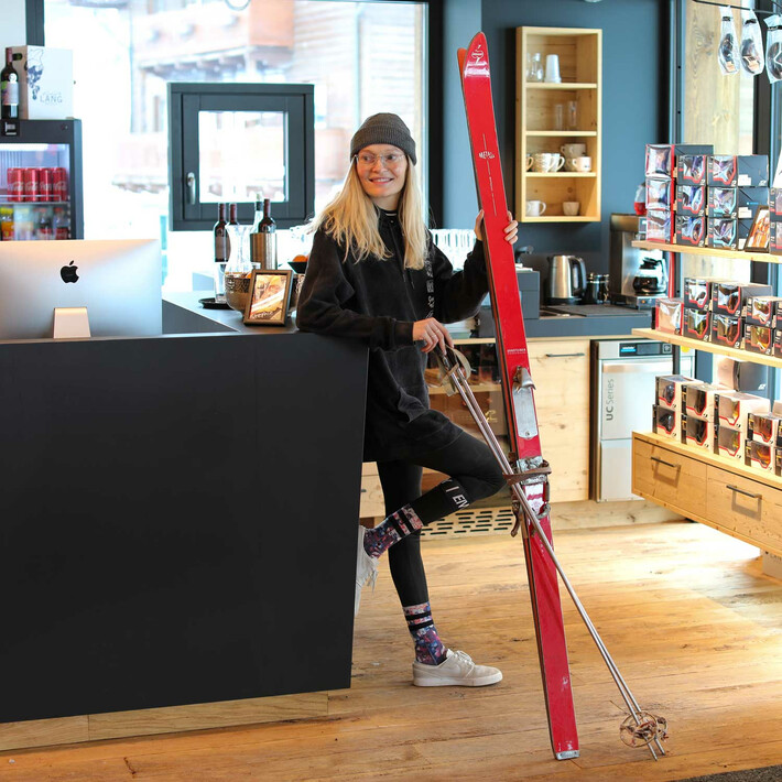 Visit the superior ski & snowboard store with ski rental, high-performance ski workshop, weekly test highlights & Austrian organic wine bar.