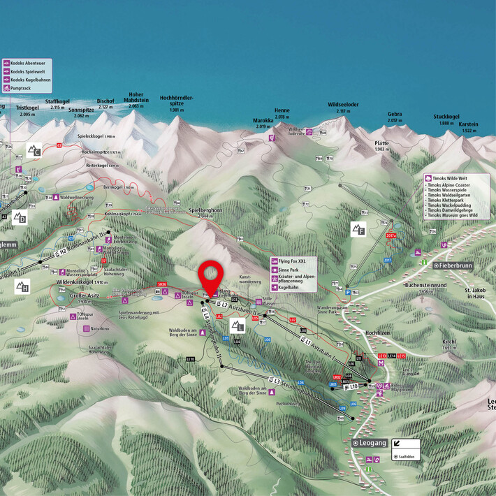 - With L1+L2 Asitzbahn - e.g. regional bus 690 (bus stop Leogang Asitzbahn)