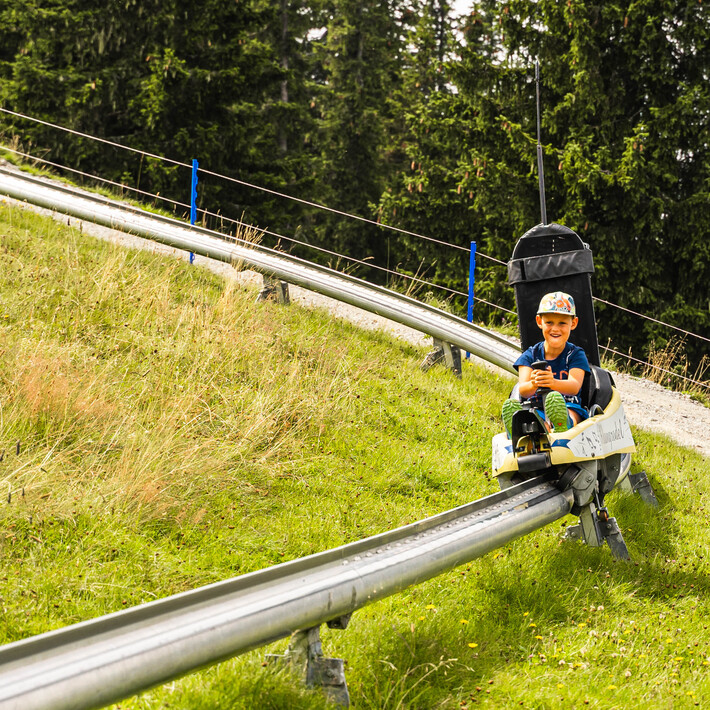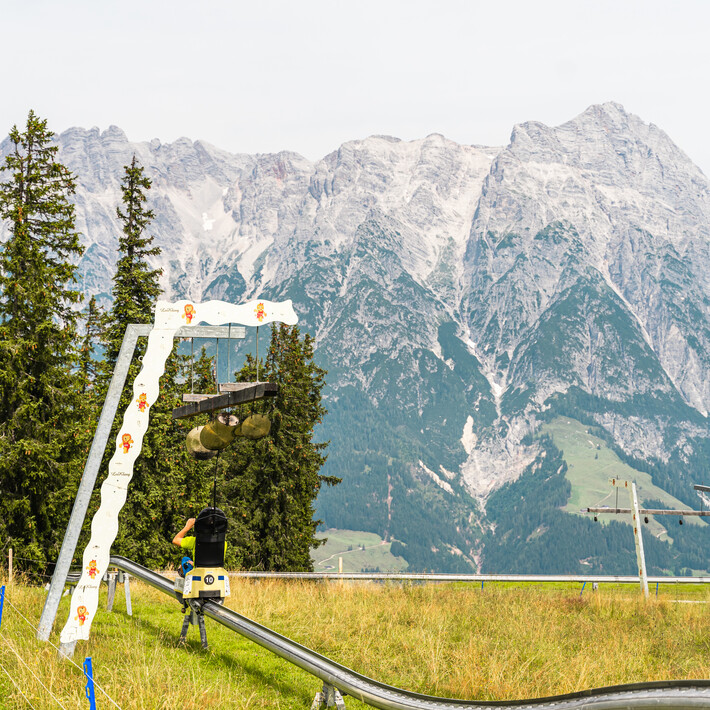 Fasten your seatbelt and open your ears! A summer toboggan run with a difference awaits you right at the Asitz lift mountain station. As you ride down, bells and musical features come into action, creating a real sound experience out of tobogganing. Do you recognise a well-known nursery rhyme? The high-speed ride at 1.800 metres above sea level skilfully combines fun with various sensory impressions.