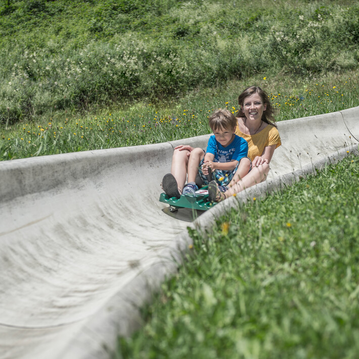 Fun for the whole family Spaß is guaranteed along the 1.6 km long Summer Tobogganing at Bilberg.