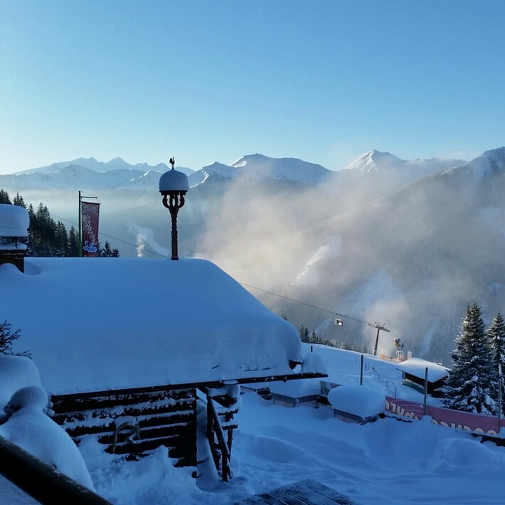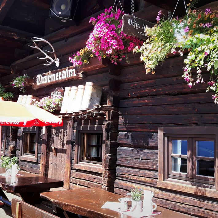 The Thurneralm is located on the sunny side of the mountain on the Kohlmais piste 56 or 45/66 – in summer up above the Montelino’s Adventure Path at an altitude of 1,574 m right next to the bike trail which take you in the direction of the Schönleiten and Wildenkarkogel.
