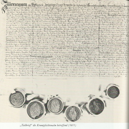The peasants did not have it easy in the Middle Ages either, so they were not even welcome at dance festivals with officials and officers. "Probably a sad attitude towards the state that had to provide food for the entire population," one reads in the Heimatbuch. As bondsmen of a spiritual or worldly lordship they were subject to the lord of the manor and had to pay taxes. There were various forms of fiefdom (a free man received a fiefdom when he entered the service of a lord) of serfdom. The probably most unfavourable one was the "Freistift". This enabled the landlord to take away the farmer's farm again every year. With the "Leibgedinge" the farmer had to pay arbitrary contributions, which could be increased at any time without reason. Probably the best form was the "Beutellehen", whereby the farmer only had to commit himself for the lord in case of war, otherwise he was largely without financial burdens.