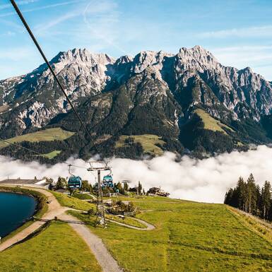 During the summer months, you can travel from the centre of Saalbach Hinterglemm up into the mountains in a leisurely and comfortable way. Up to six lifts - all of which are cable cars - ensure a carefree ascent for families, hikers, bikers and lovers of nature. With the JOKER CARD, which is included within the offer with our partner companies, you can even use the lifts that are running in summer free of charge. Here you will find all information regarding lifts in operation during the summer, opening times and prices.