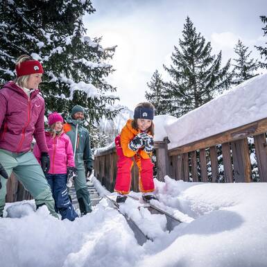 Take off your ski boots and head out into the world of adventure in the Skicircus Saalbach Hinterglemm Leogang Fieberbrunn! Romantics will love going on a winter hike through the deep snow, or a cosy sleigh ride. Those in search of adventure can try tandem paragliding on the Westgipfel in Hinterglemm, or a ride on a snowmobile in Saalbach. Snowtubing is always a winner, as well as tobogganing or a few circuits on the ice-rink. All activities in Saalbach Hinterglemm provide fun for guests of all ages. The Treetop trail and cross-country skiing are activities for those in search of solitude and being at one with nature. During your winter holiday in Saalbach Hinterglemm, there will be no opportunity to get bored after a day skiing or snowboarding! The range of activities, both indoors and outdoors is varied and for all age groups and really cool!