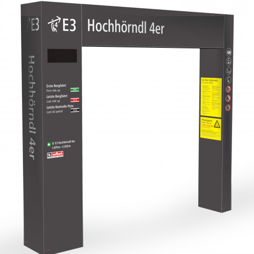 At the lift entrances there are grey portals with the key information for skiing fun: a one-stop information point with lift names, operating times, the time, safety information, skiing routes,...